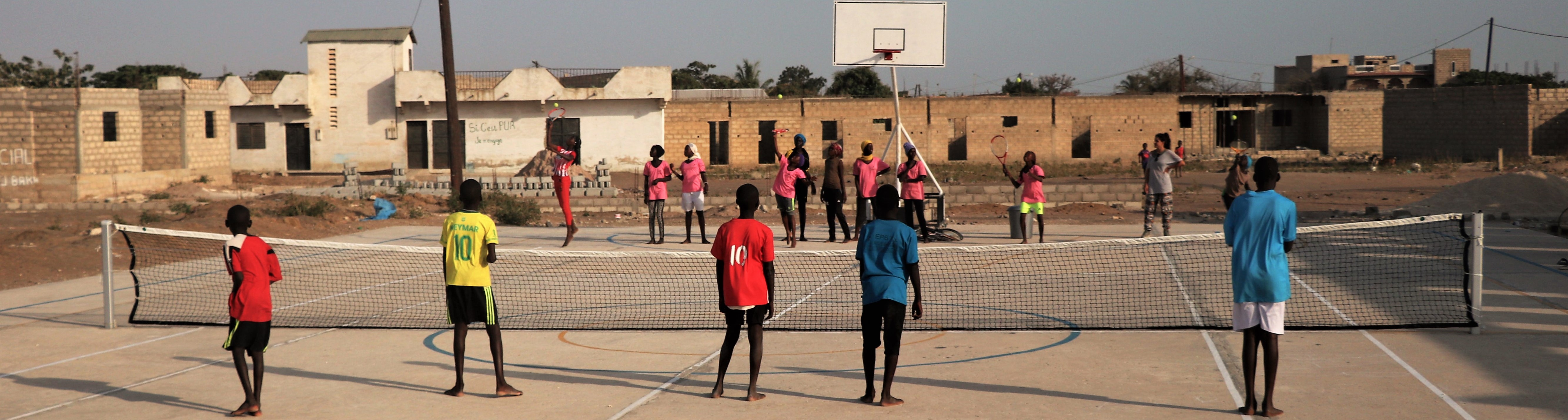 Conforme el mes de abril avanzaba y miles de aves cruzaban en bandadas delante de un sol poniente en dirección a la vegetación del vasto manglar, el grupo de estudiantes golpeaba la pelota de tenis sobre una superficie ya delimitada para este deporte. El marcaje de la cancha de baloncesto seguía su ritmo y la llegada de las canastas desde Dakar dotaban a la pista polideportiva de mayor prestancia. Se realizaban también las primeras mediciones de las líneas que delimitan el terreno de juego de fútbol sala.